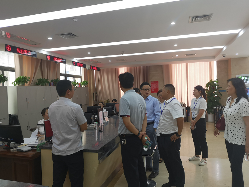 8月25日下午,市行政审批局党组书记姜衡湘一行来区政务中心调研“一件事一次办”工作,区行政审批局局长曹虎陪同调研。