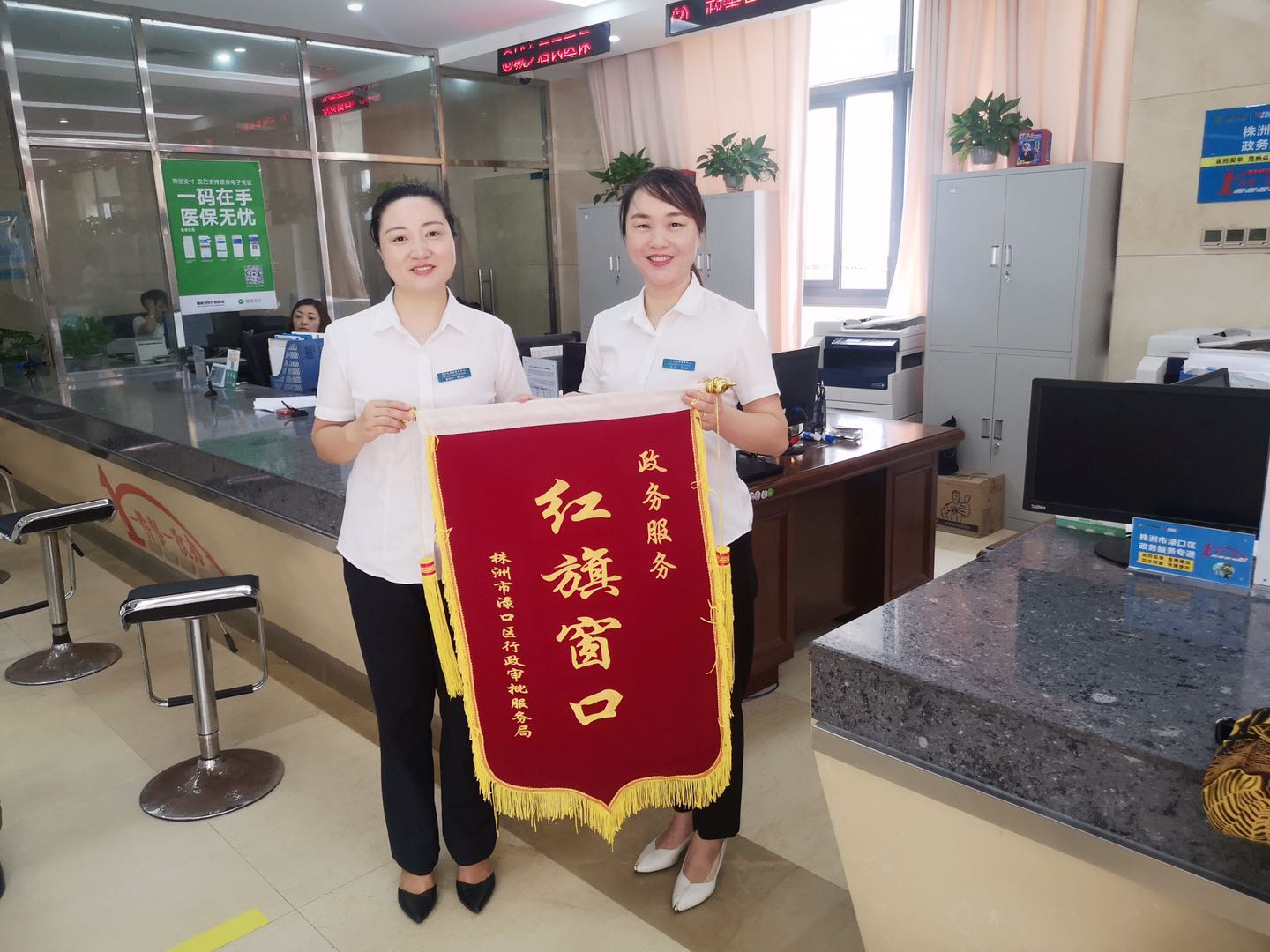 为提升政务服务质量,优化政务服务人员水平,树立一批爱岗敬业、乐于奉献的榜样,从而进一步推动政务服务各项工作协调发展,激发全体窗口工作人员的工作热情。渌口区政务服务中心坚持每月开展“红旗窗口”和“服务标兵”的评选活动。