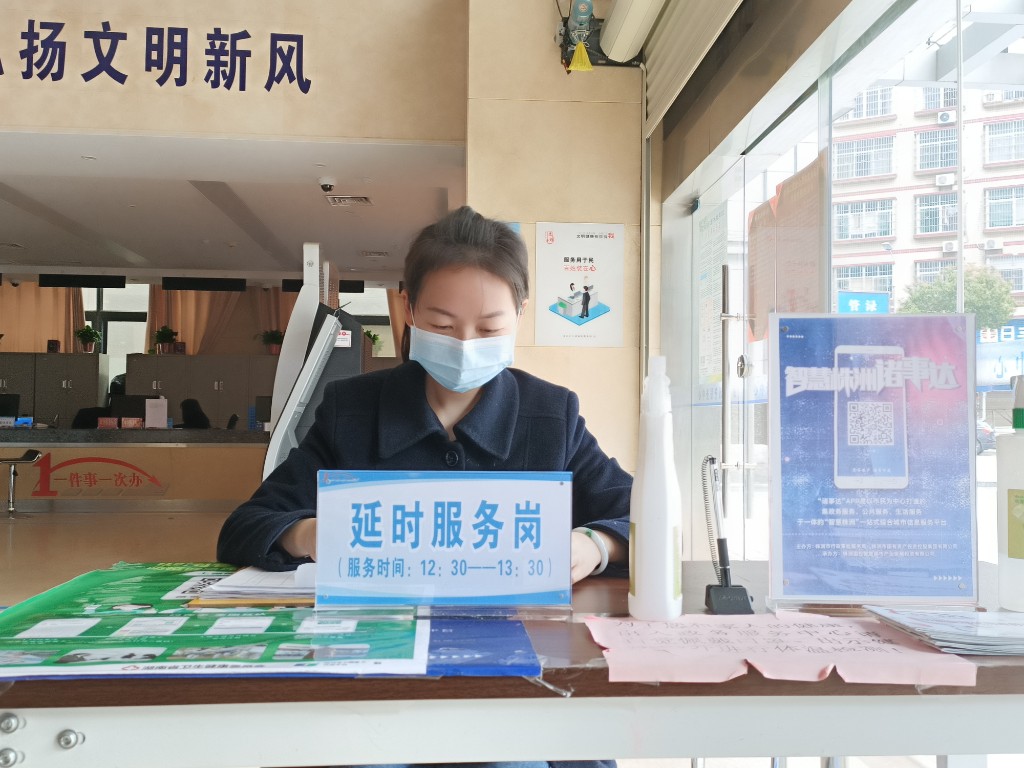 为优化政务服务,进一步方便群众办事,提高服务质量,渌口区政务服务中心自2021年3月15日起,实行“午间不间断”延时服务,并且专门开设了延时服务岗,延迟服务时间为每周一至周五中午12:30-1:30。