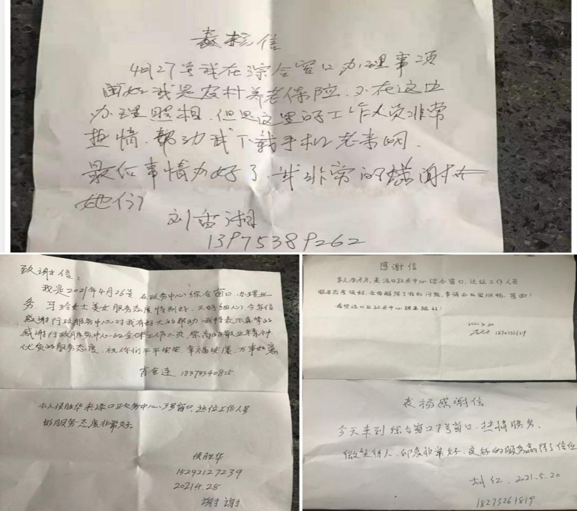 真情换真心,服务聚人心。除了这份留言表扬,区政务服务大厅经常会收到群众的锦旗、表扬信。虽然表扬和感谢的事儿不同,但这背后政务服务大厅便捷舒心的办事体验、全体政务服务人员温暖精致的贴心服务却是一样的。渌口区政务服务大厅全体工作人员将一如既往地当好最暖“店小二”,为聚力打造营商环境样板区、服务和推动全区高质量发展做出最大努力。