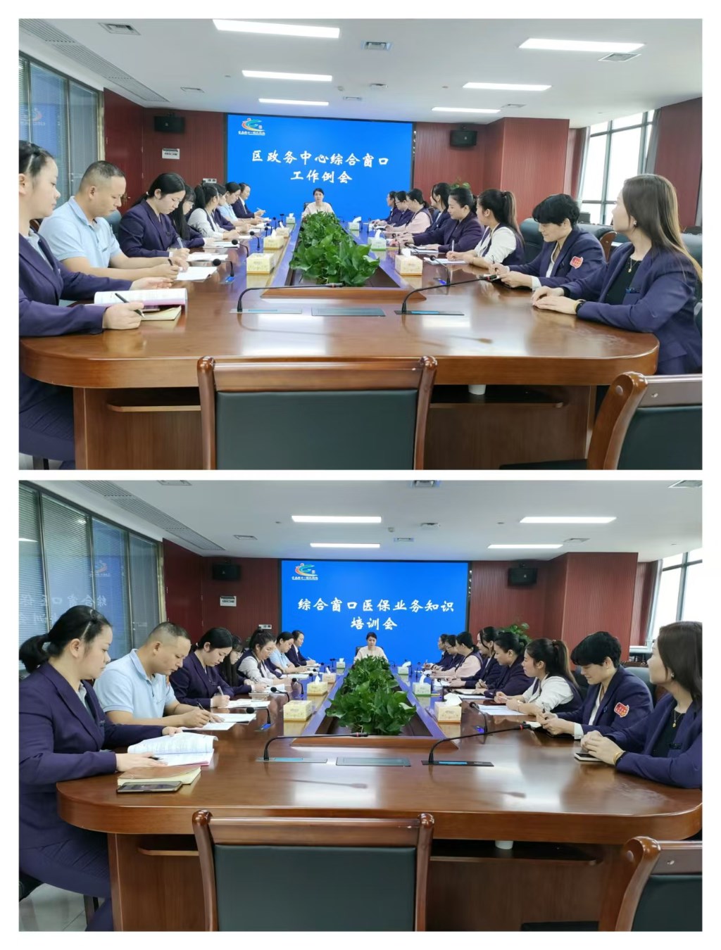 为深化“放管服”改革,提高综合窗口工作人员业务能力和办事效率,为群众提供更优的服务。区政务服务中心召开综合窗口工作例会和医保业务知识培训会。