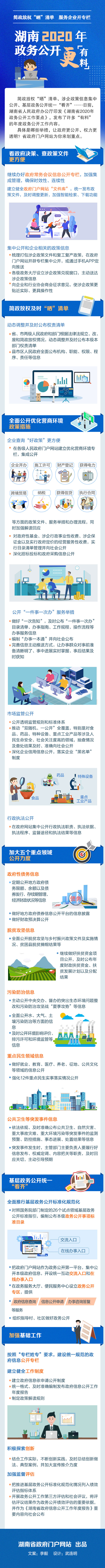 简政放权“晒”清单、涉企政策信息集中公开、基层政务公开统一“看齐”……日前,湖南省人民政府办公厅印发《湖南省2020年政务公开工作要点》,发布了许多“有料”的年度政务公开工作内容。