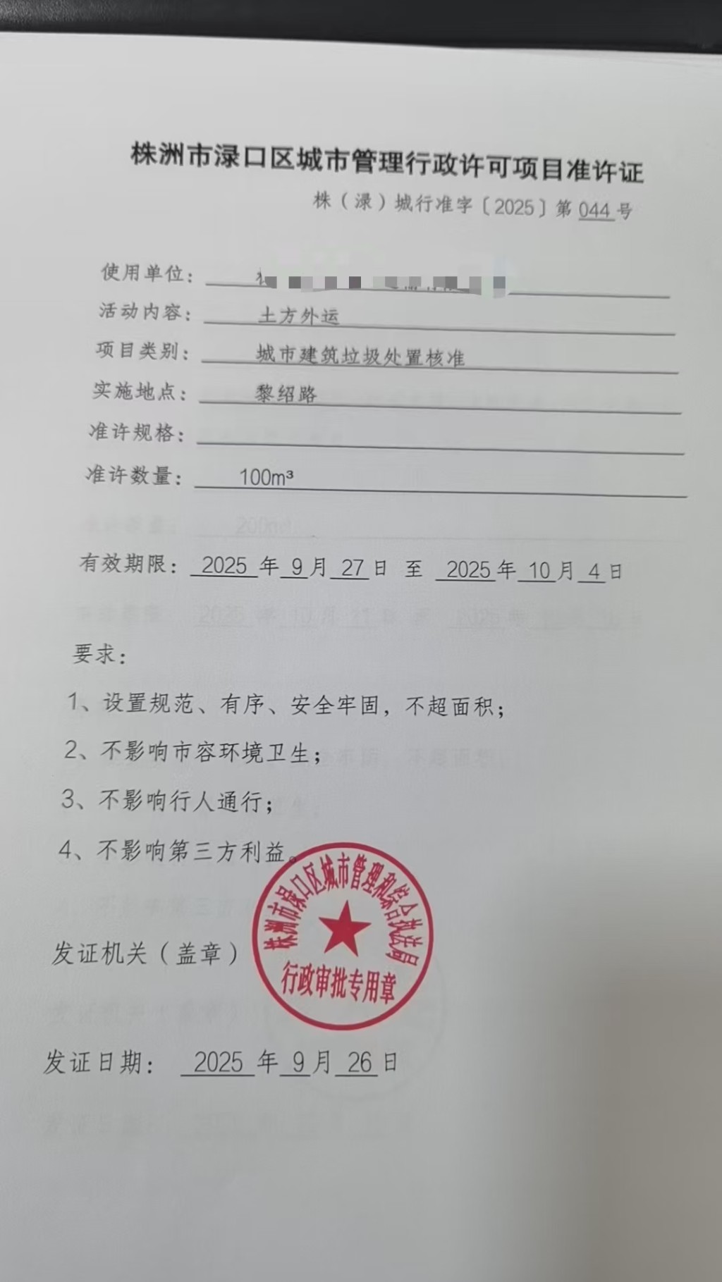 株洲市渌口区城市管理行政许可项目准许证株(渌)城行准字【2025】第044号株洲市渌口区城市管理行政许可项目准许证株(渌)城行准字【2025】第041号