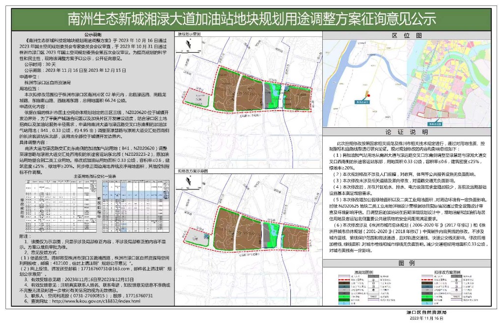 南洲生态新城湘绿大道加油站地块规划用途调整方案征询意见公示