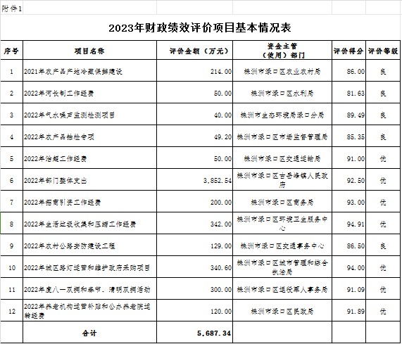 根据《中共湖南省委办公厅 湖南省人民政府办公厅关于全面实施预算绩效管理的实施意见》(湘办发〔2019〕10号)、《中共株洲市渌口区委办公室 株洲市渌口区人民政府办公室关于印发〈渌口区全面实施预算绩效管理工作方案〉的通知》(渌办发〔2020〕4号)等文件有关规定,为规范和加强财政资金管理,切实提高财政资金使用效率,强化绩效监管,促进区域财政高质量发展,并完成《渌口区财政局“绩效管理提升年”行动实施方案》提出的相关任务,区财政局委托第三方对2022年度部分预算绩效评价对象进行现场绩效评价。本次绩效评价范围和对象为退役军人事务局八一双拥和春节、清明双拥活动项目;交通事务中心农村公路安防项目;生态环境局渌口分局气、水、噪声监测检测项目;城市管理和综合执法局路灯维护项目等重点项目支出和古岳峰镇2022年度部门整体支出。
