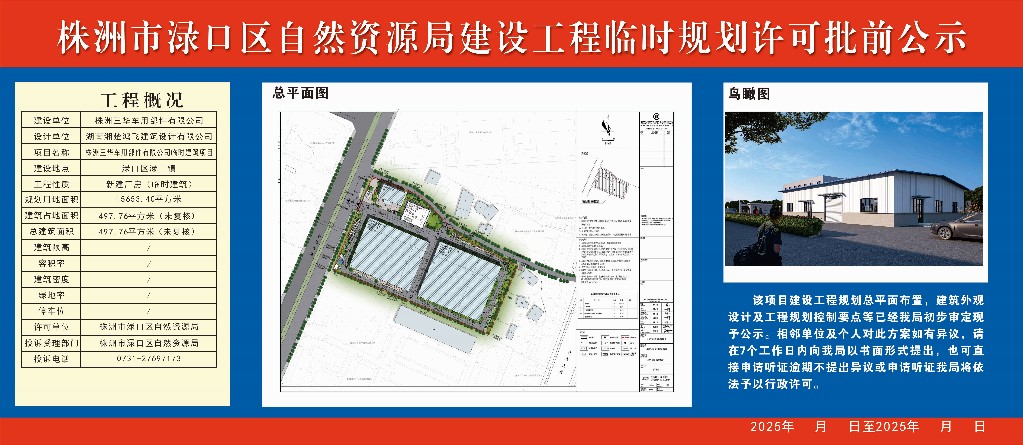 建设工程临时规划许可证批前公示一株洲三华车用部件有限公司