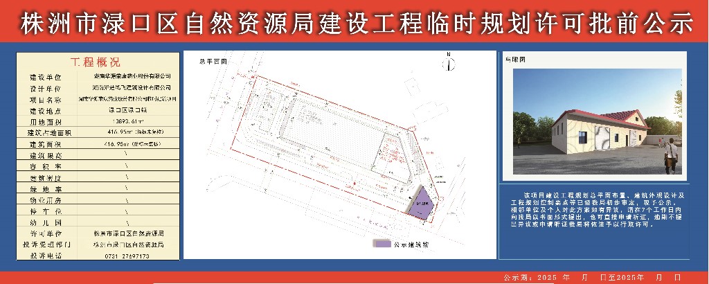 建设工程临时规划许可证批前公示-湖南华源荣康药业股份有限公司临时建筑项目
