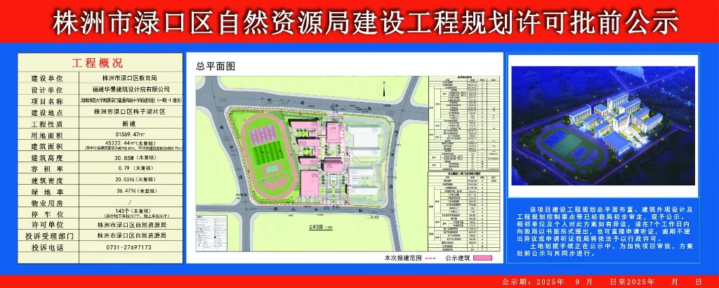 建设工程规划许可批前公示一湖南师范大学附属渌口普通高级中学新建项目(一期-1地块)