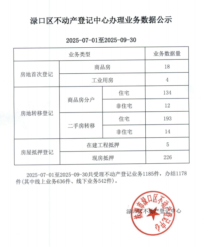渌口区不动产登记中心办理业务数据公示