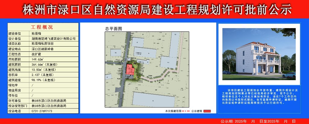 建设工程规划许可证批前公示一陈雪梅私房项目