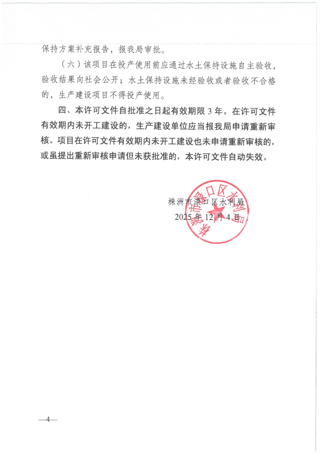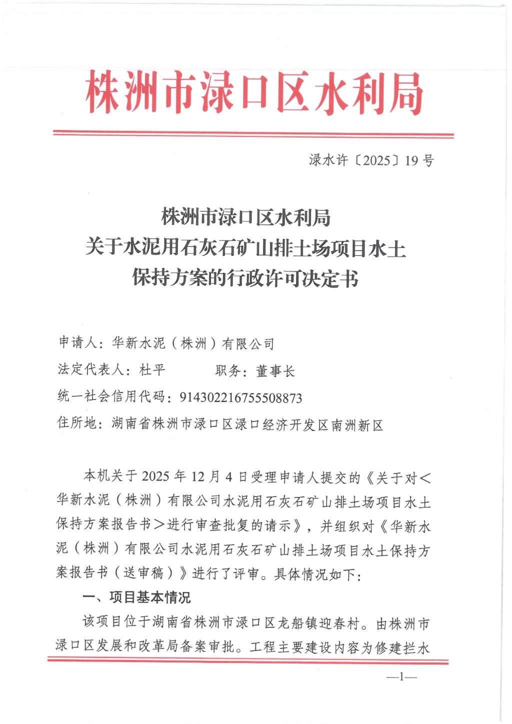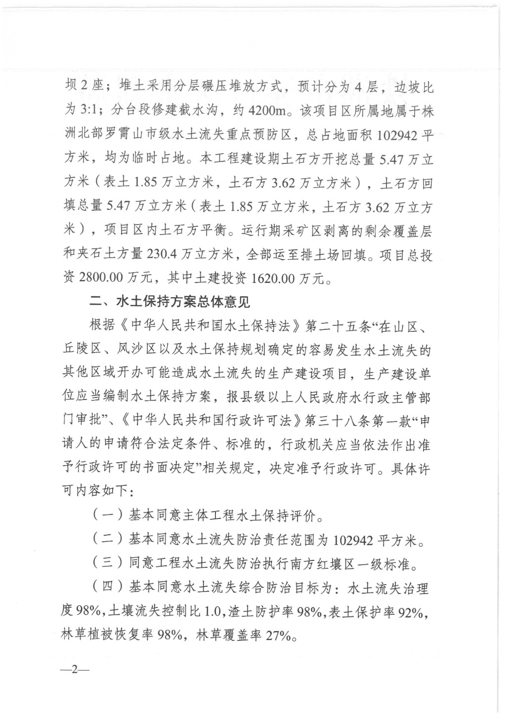 株洲市渌口区水利局关于水泥用石灰石矿山排土场项目水土保持方案的行政许可决定书