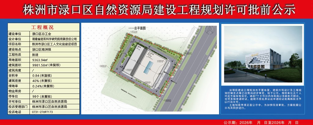 建设工程规划许可批前公示一渌口区工人文化宫建设项目