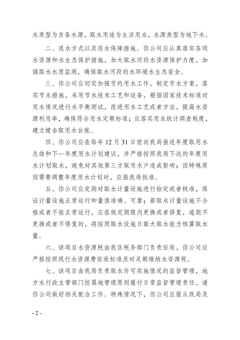 株洲市福岭木业有限公司取水许可证