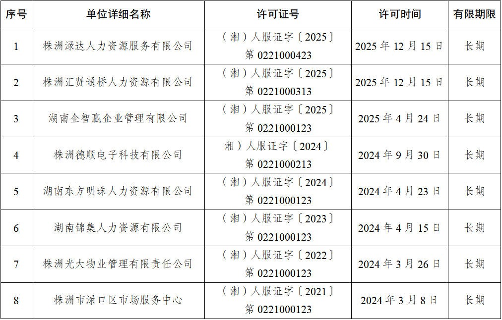 渌口区人力资源服务机构信息公示