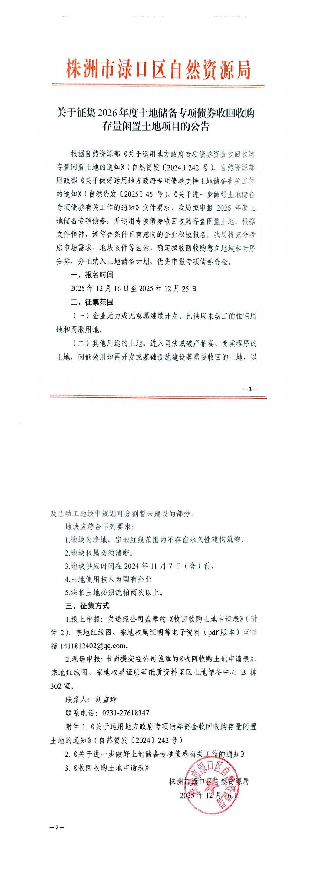 来源: 渌口区自然资源局 更新日期:2026-01-23 作者:土地储备中心