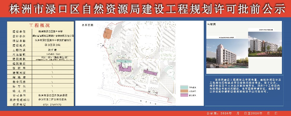 建设工程规划许可证批前公示一株洲市渌口区第五中学改扩建项目