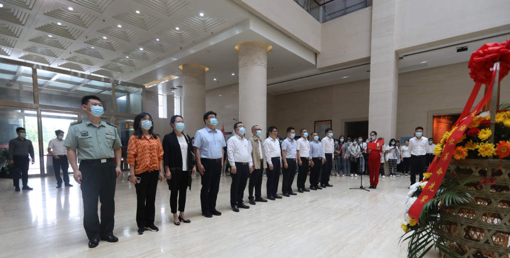 近日,罗绍昀、刘克胤一行乘车抵达湖南党史陈列馆。区委理论学习中心组成员在党史馆大厅肃立,向“潇湘魂”主题雕塑敬献花篮。罗绍昀神情肃穆地走上前去,仔细整理花篮上的红色缎带。全体成员向铜像三鞠躬。随后,区委理论学习中心组成员整齐列队,面对鲜红的党旗,举起右手,在罗绍昀的带领下庄严宣誓,重温入党誓词。