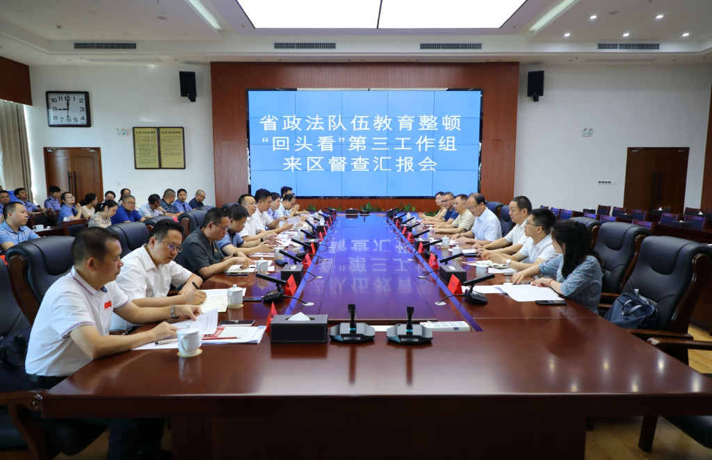 汇报会上,区委常委、政法委书记胡旭代表区委汇报了渌口区政法队伍教育整顿工作情况,区领导罗浪、邓国平、凌辉和司法局负责人分别汇报了公检法司四机关教育整顿工作情况。