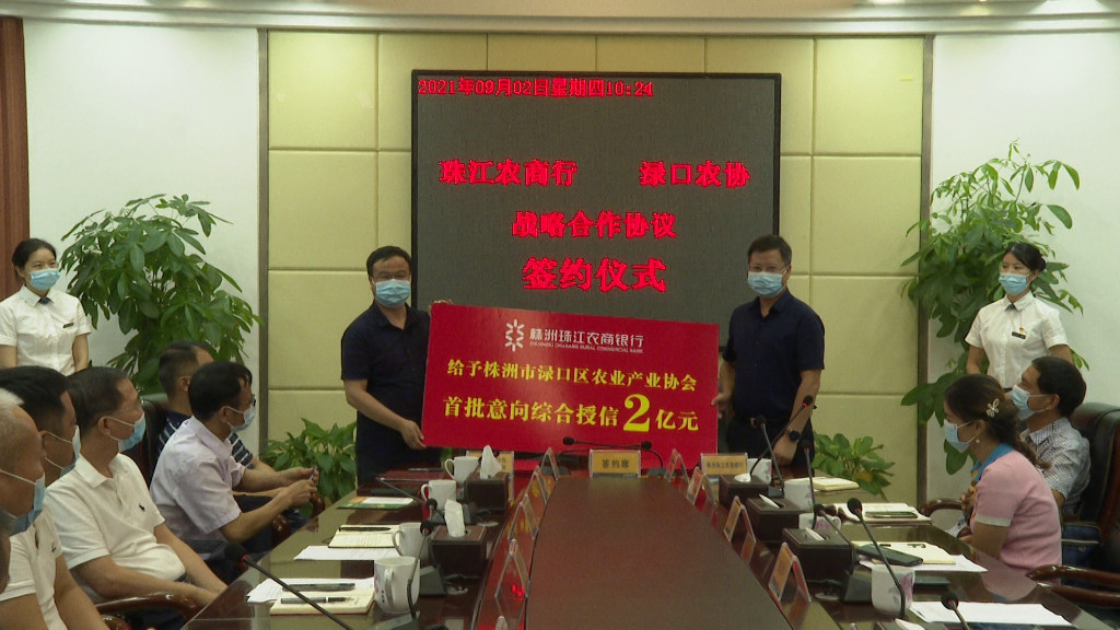 9月2日,渌口区召开农商农协政银企对接会,株洲珠江农商银行与渌口区农业产业协会签订合作协议,株洲珠江农商行向区农协及其82家会员单位提供2亿元意向授信额度。