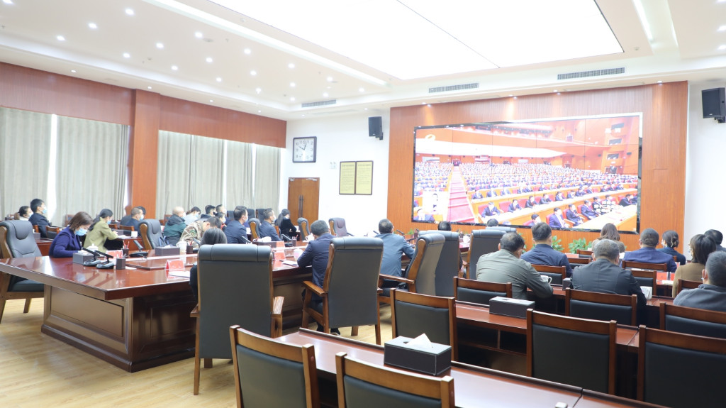 区领导杨慧、何波、杜益、贺春福、王万里、刘行国等在家区领导收看大会直播。