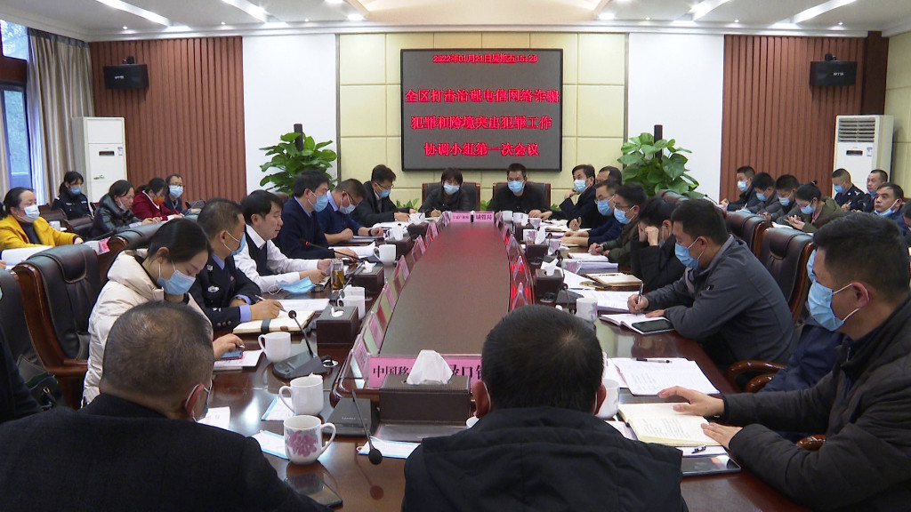 1月21日,渌口区召开打击治理电信网络诈骗犯罪和跨境突出犯罪工作协调小组第一次会议。区委副书记、政法委书记、区协调小组第一组长梁天琛出席会议并讲话。