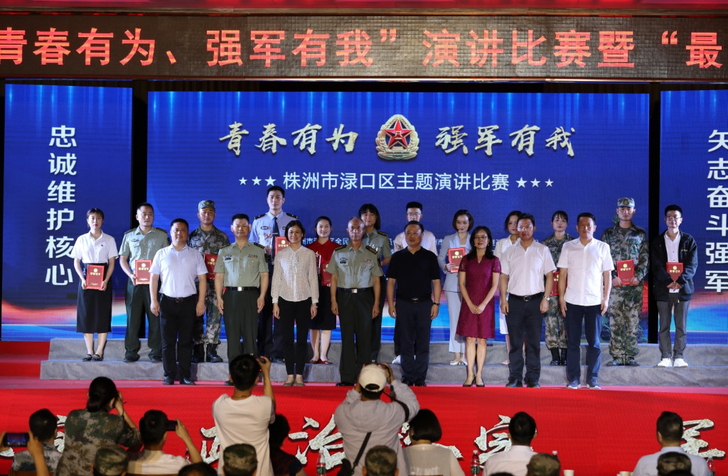 6月9日晚,渌口区举行“青春有为、强军有我”演讲比赛暨“最美民兵”颁奖活动,激扬青春旋律,展现民兵风采,奋进强军征程。市委常委、军分区大校政委周杰出席活动并为“最美民兵”颁奖,区委书记、渌口经开区党工委第一书记、区人武部党委第一书记李晓彤,区委副书记、区长、区国防动员委员会主任赖晓智参加。