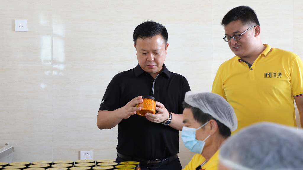 株洲珉豪生态农业发展有限公司以渌口区农产品地理标志商标——“株洲王十万黄辣椒”品牌为突破口,以渌口区种植结构调整为契机,大面积种植王十万黄辣椒及白丝瓜、茄子、苦瓜、豆角、芋头等其他经济作物,年产值2000余万元。李晓彤详细了解企业发展和项目进度,希望企业注重典型带动,发展村级集体经济,做强乡村特色农产品,打造“一村一品”特色,实现村级集体经济的可持续发展,促推乡村振兴。