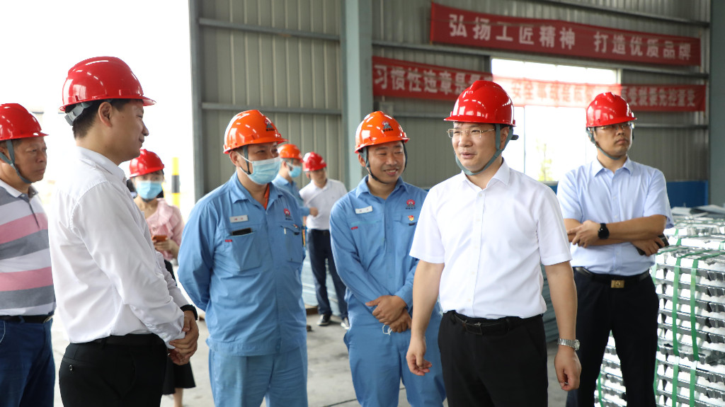 王卫安一行来到株冶火炬新材料有限公司生产车间,现场详细了解项目推进情况、企业生产经营情况和存在的问题困难,并与相关负责人进行深入交流。