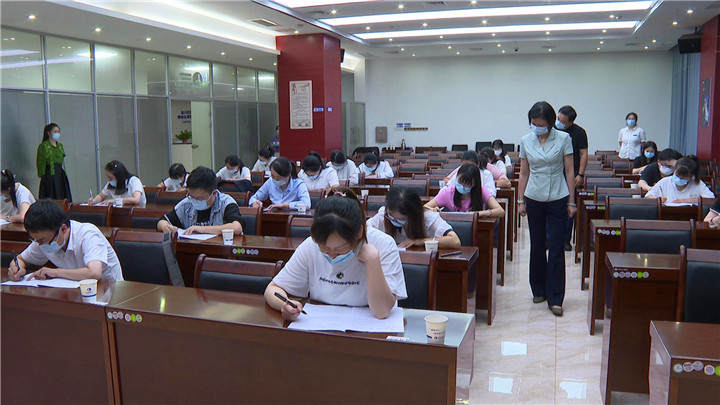 6月13日晚, 区委副书记、区长赖晓智到区行政审批局巡视政务服务中心综合窗口理论测试工作,26名工作人员参加测试。