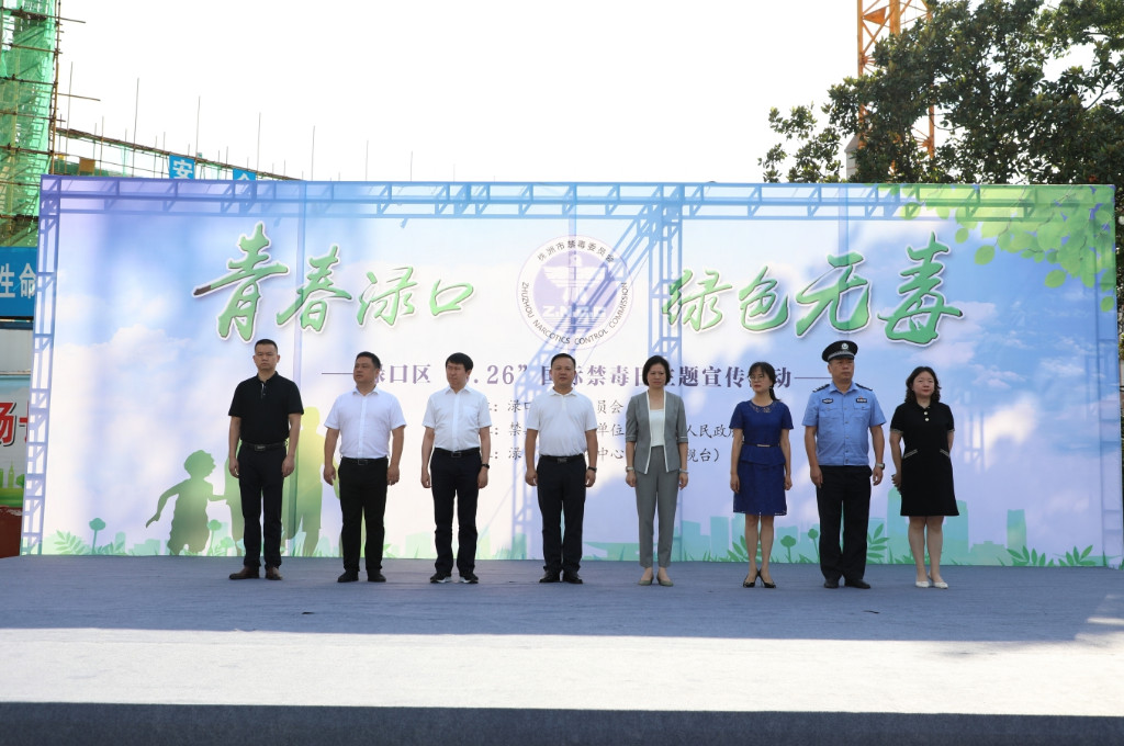 6月24日上午,在第 35 个"6·26"国际禁毒日即将到来之际,渌口区禁毒委员会组织在渌口镇伏波广场举行以“青春渌口 绿色无毒”为主题的"6.26"国际禁毒日集中宣传活动,倡导社会大众远离毒品,珍惜健康生活。区委书记、渌口经开区党工委第一书记李晓彤,区委副书记、区长、区禁毒委主任赖晓智参加活动。
