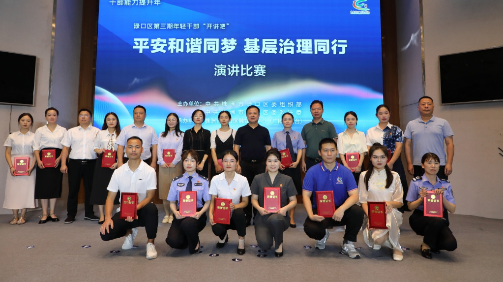 9月1日,由渌口区委组织部、区委政法委组织的第三期年轻干部开讲吧——“基层治理”主题演讲比赛在叶茗居酒店举行,15名年轻干部围绕主题,结合工作实际,用身边人说身边事,从不同视角传递出基层治理的新路径。区委书记、渌口经开区党工委第一书记李晓彤观看比赛并为获奖选手颁奖。区委常委、政法委书记钟碧武致辞。