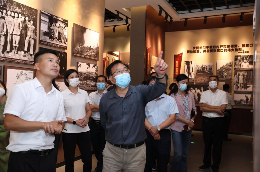 来到渌口博物馆,一张张泛黄的历史照片,一件件充满岁月痕迹的珍贵文物,一段段感人至深的革命故事,再现了杨得志将军戎马一生的光辉岁月。陈晋不时驻足停留,凝视一幅幅图片,观察一件件实物,询问有关细节,详细了解了强渡大渡河、清风店战役、上甘岭战役等著名战斗故事。