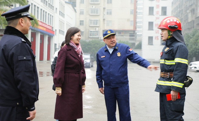 在区消防救援大队,赖晓智看望慰问即将出警的消防救援人员,对大队认真履行职责、确保全区消防安保工作持续稳定作出的突出贡献表示衷心感谢。希望全体消防救援人员每一次出警,都能够平平安安,同时要继续发扬优良作风和顽强作风,做好节日期间消防应急救援各项工作,确保人民群众度过一个平安祥和的春节。