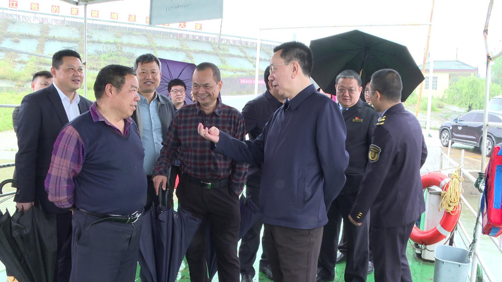 易湘东一行首先前往渌口镇菜码头检查渡口渡船安全运行情况,对渡船上下岸、渡口路段限速、救生设备配备等安全防范措施进行督查,要求加强安全防范意识,杜绝超载、夜航等行为发生,确保渡运安全。