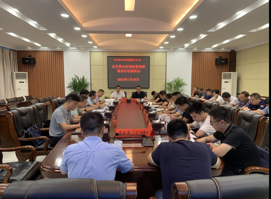 在随后召开的全区聚众打牌经营场所整治行动推进会上,全体与会人员共同观看《渌口区:整治聚众打牌见成效 倡导健康娱乐树新风》整治行动纪实短片,区委政法委通报了专项行动整治情况,渌口公安分局、渌口镇、古岳峰镇分享整治工作经验。