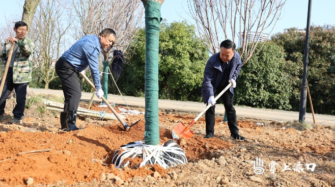 到达植树点,李晓彤、赖晓智拿起铁锹、水桶等工具,与广大干部群众一起忙活起来。李晓彤号召,大家要树牢绿水青山就是金山银山的理念,坚定不移走生态优先、绿色发展之路,推进全域植绿护绿,为美丽青春渌口增绿添彩。大家分工协作、相互配合,扶树正苗、挥锹铲土、浇水培土,经过一番劳动,200株樱花树迎风挺立,在和煦的春风里洋溢勃勃生机。