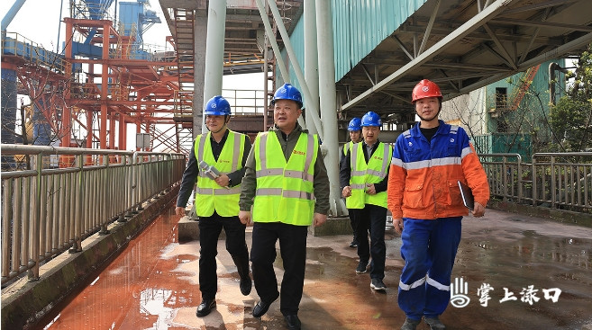 来到华新水泥(株洲)有限公司专用码头,李晓彤仔细查看码头环境,听取码头经营情况介绍。