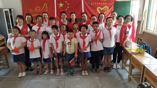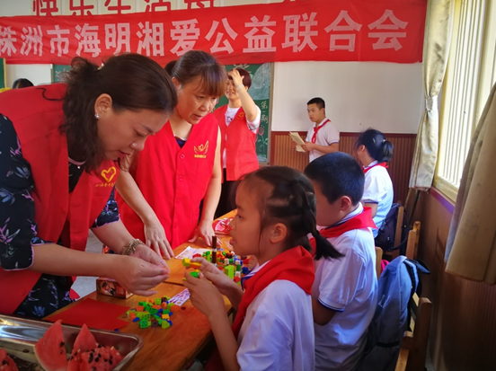 9月30日,渌口区自然资源局党组书记、局长蔡凤美率志愿服务队,与株洲市海明湘爱公益联合会一起,来到渌口镇湖塘小学,陪特教班的孩子们共迎国庆。