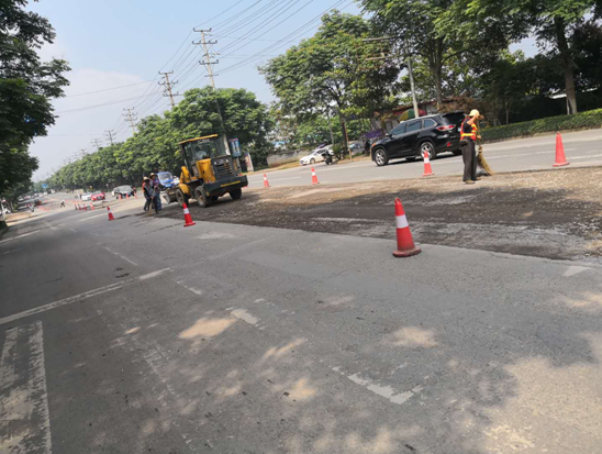 今日大维修共投入8台次机械设备及30余名施工人员,截止到目前已修补破伏波大道损沥青路面和水泥路面5100多平方米。