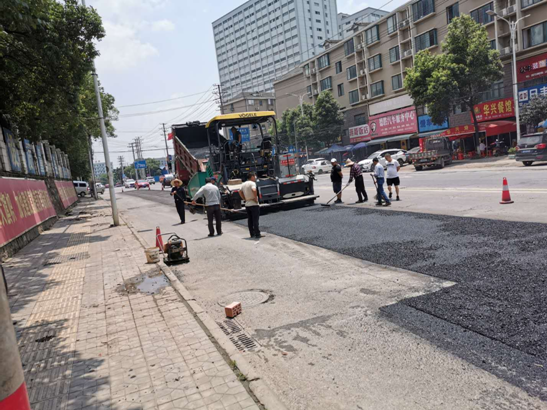 6月14日,区城管局市政园林绿化处利用高温晴热天气,实行突击维护施工作业模式,重点针对伏波大道破损路面进行修补,方便市民出行。