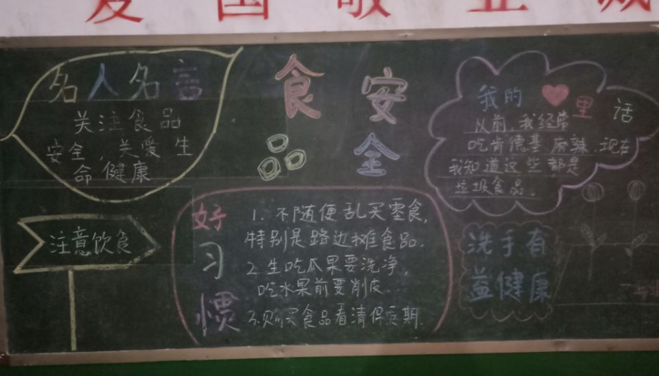为了进一步加强学校食品安全科普教育工作,保障校园食品安全,提高师生食品安全自我保护意识和预防、应对风险的能力,为进一步保证学生的健康成长,增强学生食品安全意识,普及食品卫生安全知识,古岳峰金台小学开展了"食品安全进校园"宣教活动,包括上一节食品安全知识宣传教育主题班会,出一期食品安全主题黑板报。