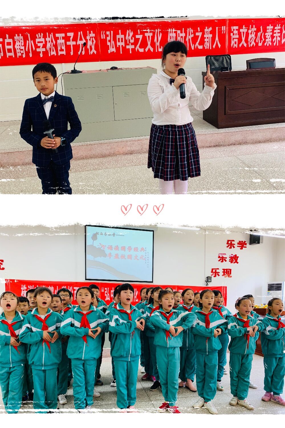用经典浸润心灵,让阅读丰富人生。阳春四月,在朗朗的诵读声中,松西子小学"弘中华之文化,做时代之新人——中华经典诗文、成语故事"决赛如火如荼地进行着。我们以班级为单位,采取个人诵读、小组朗诵、人人参与的形式,旨在通过读经典、学经典、传承发扬中华民族传统文化。