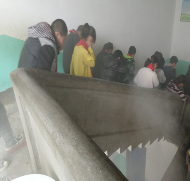 一阵急促的警报声拉开了"师生安全疏散演练"活动,听到警报后,师生反应敏捷、行动迅速,按照指定路线,猫着腰,用手、袖口、湿巾等捂着嘴鼻迅速有序地进行紧急疏散,全体师生在第一时间撤离到校园的安全地带。各班班长清点人数后,并上报总指挥。整个演习过程做到快速、安全、有序。