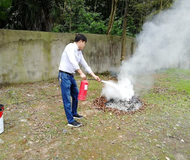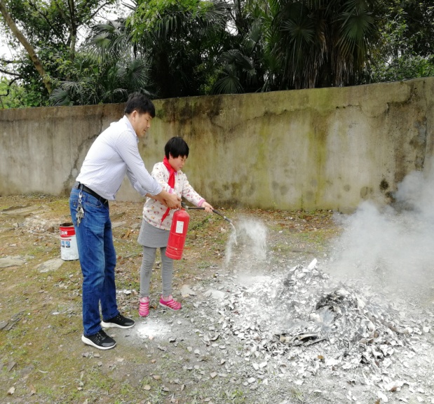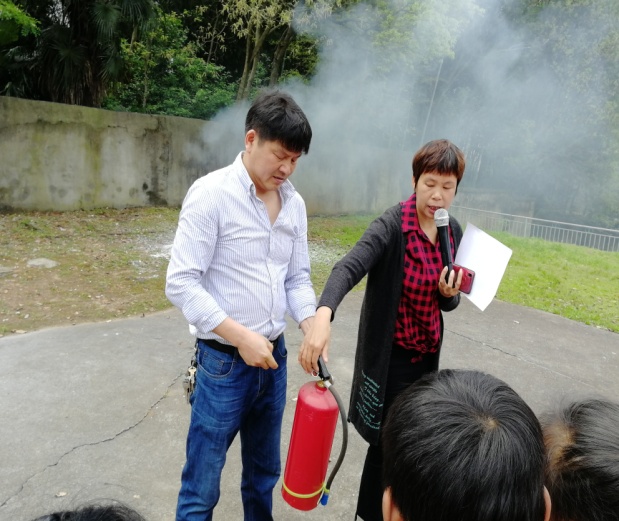校长与总务主任一起配合向全校师生讲解了灭火器的使用技能,提醒同学们在使用灭火器的时候,一定要站在火源的上风向,并且与火源保持一到两米的安全距离,以免被火苗烧伤,最后还请出几位学生代表练习灭火,学生代表均能利用灭火器进行成功灭火,同学们兴趣高涨。