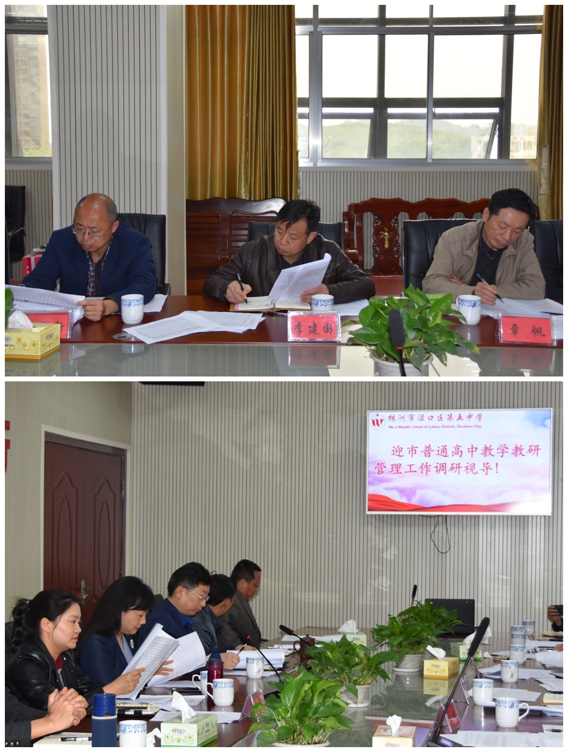 2019年4月12日,株洲市教育局副局长李建国,市教育局基教科章帆科长、齐长新副科长一行来到株洲市渌口区五中,对渌口区普通高中进行2019年教学教研管理工作调研视导。会议在株洲市渌口区第五中学图书馆四楼会议室召开。渌口区副区长漆帅花,区教育局长易国林、副局长宋鸥及区各普通高中校长、教学副校长等参加了此次会议。