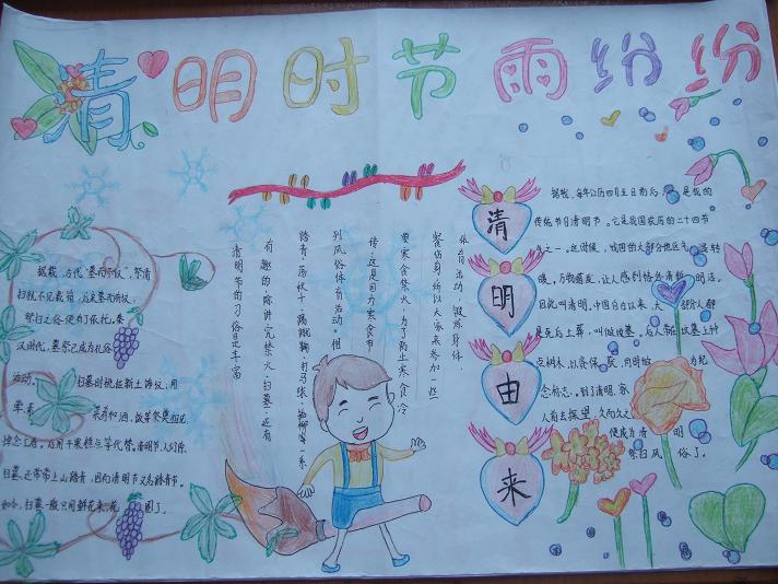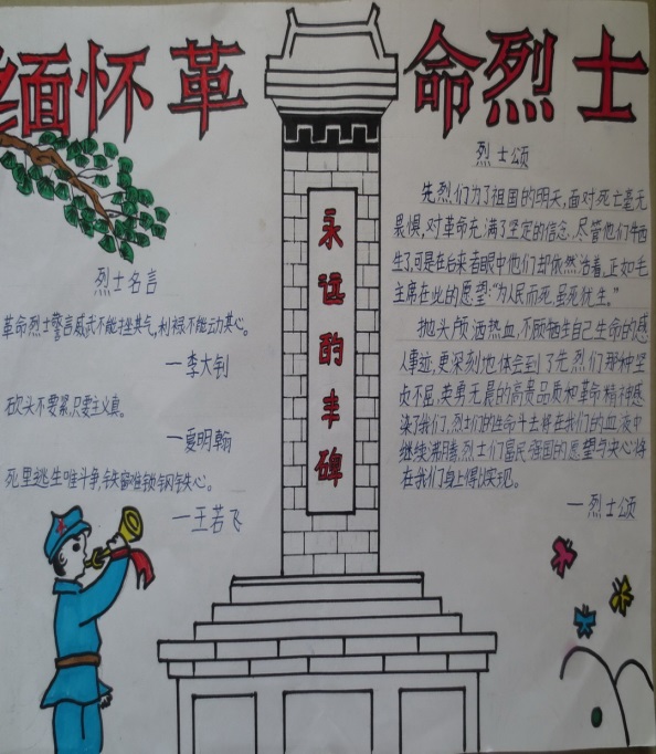 高年级的班主任们,提前布置好任务,让同学们自己搜集清明节的资料,自己制作课件、自己动手绘写手抄报、自己主持班会课,既锻炼和培养了学生的各项能力,又对学生进行了缅怀革命先烈、继承光荣传统,珍惜当下生活,激发爱国主义情感的教育。学生针对此次活动,用自己的方式表达对革命先烈的敬爱之情。