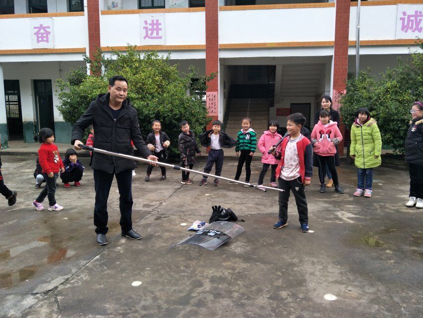 接下来校长以身说教,示范讲解器械的使用方法及如何进行自卫?