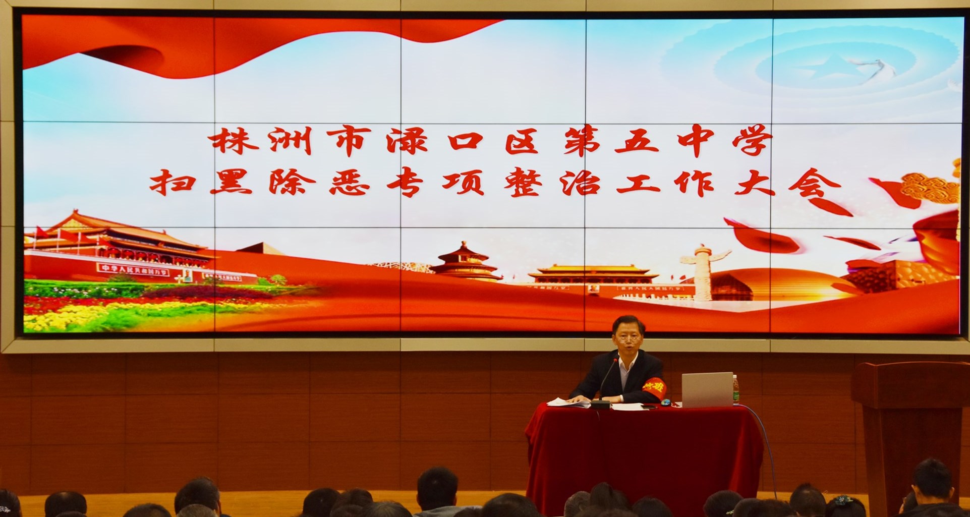 为进一步强化广大师生参与"扫黑除恶"的意识,营造校内扫黑除恶专项斗争的浓厚氛围,2019年4月1日下午第八节课,株洲市渌口区第五中学开展了扫黑除恶专项斗争知识学习大会。