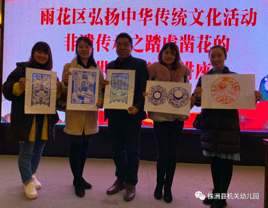 为进一步深化我园省级十二五协会课题"如何将剪纸艺术融入幼儿园一日生活中"的研究,继续将研究成果转化为园本课程。3月23日机关幼儿园剪纸课题组成员与湖南省各市州众多剪纸爱好者们齐聚长沙市雨花区非遗馆一楼中厅,聆听了湖南省剪纸研究会会长、湖南省民间文艺家协会副主席田茂军教授主讲的"国家级非物质文化遗产——踏虎凿花的前世今生"。