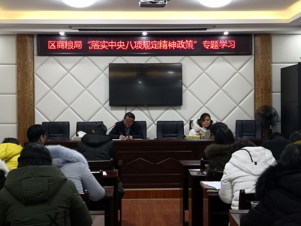 12月29日,为认真学习贯彻习近平新时代中国特色社会主义思想,进一步巩固中央八项规定精神落实成果,区商粮局组织全体机关干部开展《落实中央八项规定精神政策摘编》专题学习活动。